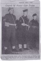 (MOG014) Ships at anchor. It is believed the one of the 2 destroyers in the foreground is HMCS Ottawa H60 // Note that the wartime censor has blanked out the ship's pendant numbers and something on the shore. (MOG015) Newspaper article from British Columbia newspaper on a Canadian warship (presumed to be HMCS Ottawa H60) arriving in England (MOG016) Newspaper article on HMCS Ottawa H60 rescuing survivors of the SS Eurymedon and SS Sularia - both of which were sunk from Convoy OB12 - Sep 1940
