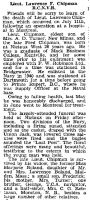 (LC01) Obituary for Lawrence Chipman // Bridgewater Bulletin and South Shore Records, Wed., 25 Jul 1945 // Researched by Rod Corkum (LC02) Documents from the Service File of Lawrence Chipman