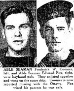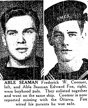 (FC01) Article on the death of Frederick Coomer and the survival of his friend Edward Fox in the sinking of HMCS OTTAWA H60 (FC02) Documents from the Service File of Frederick Coomer