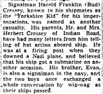 Signalman Cressey died when HMCS OTTAWA H60 was torpedoed and sunk by U-91 on 13 Sep 1942. Of her crew of 175, plus 50 survivors they had picked up, there were only 69 survivors.