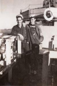 Jimmy Morrison (left) and Andy on HMCS ST CLAIR