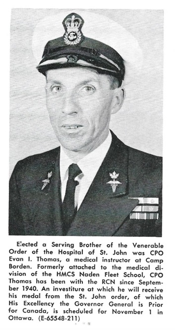 Article on Evan Thomas Sick Berth Petty Officer, RCNVR by Frank A. Healy, Lt (SB), RCNVR