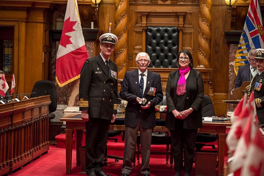 John along with 34 others receiving a special service medal and the peace keeping medal by the lieutenant governor (Janet Austin) in the chamber of the BC Legislature.