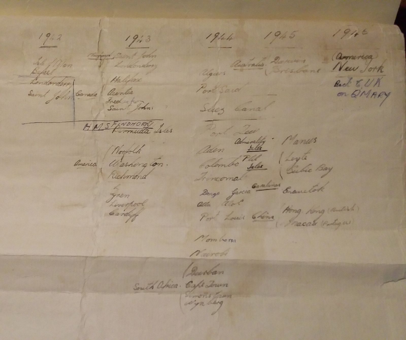 (NCL005) A list of places Norman visited (NCL007) A few of Norman's souvenirs from his travels in the Navy (NCL008) Some foreign currency saved by Norman