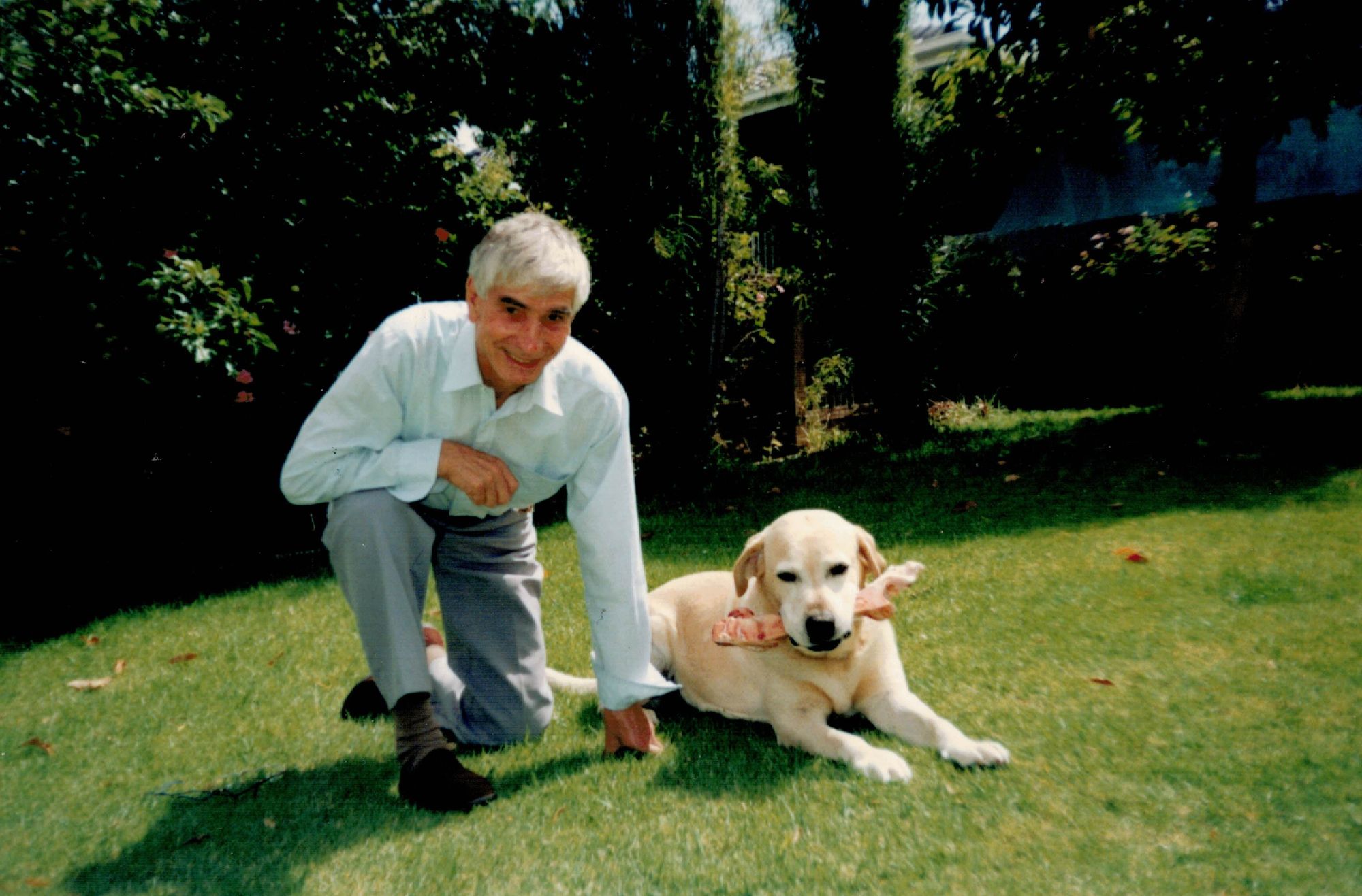 Norman in his early retirement years with his Labrador dog named Ben