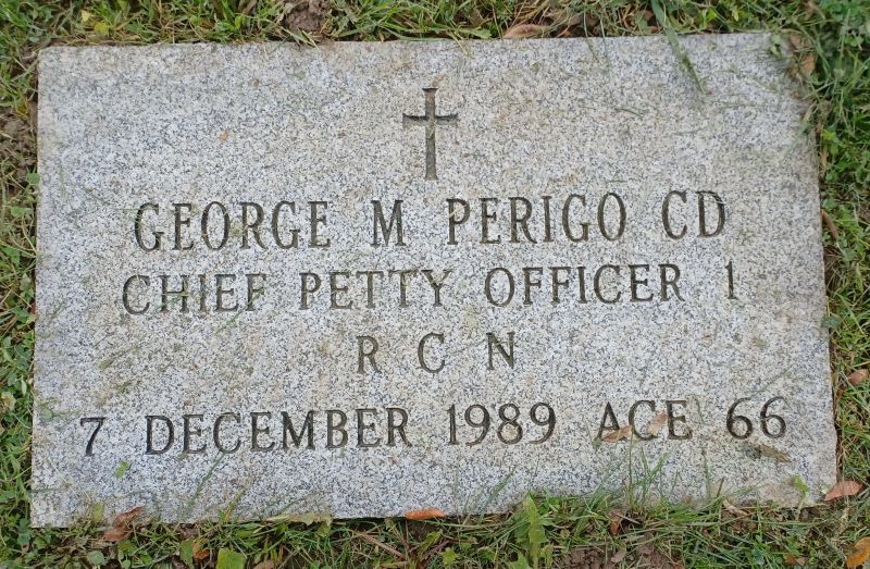 Grave marker for CPO1 George Perigo at the Mount Hamilton Cemetery Hamilton, Ontario, Canada