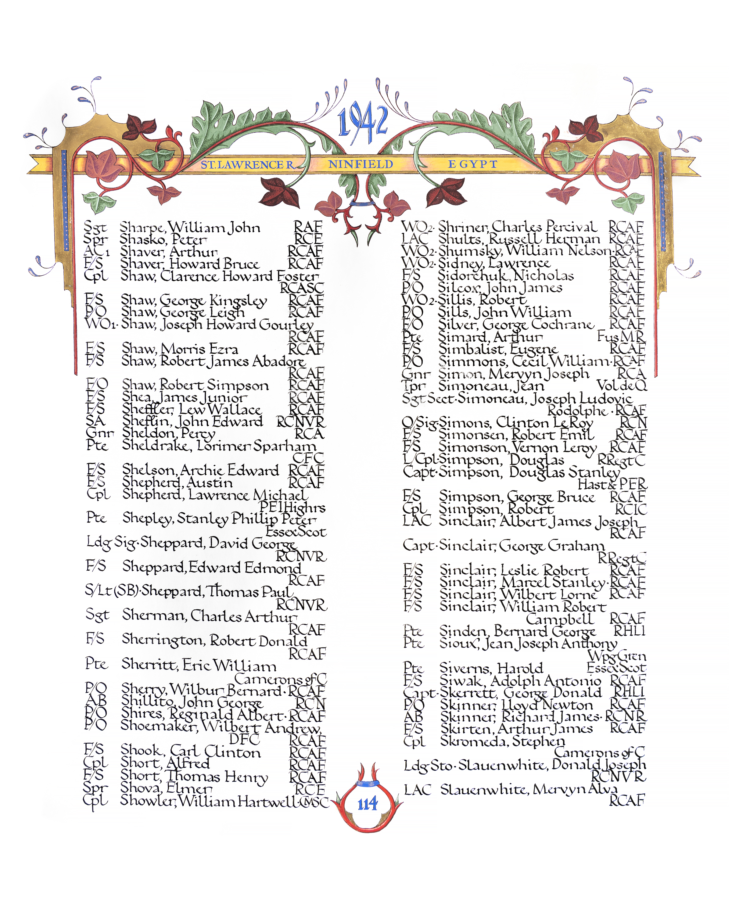 AB Shillito died when HMCS OTTAWA H60 was torpedoed and sunk by U-91 on 13 Sep 1942. Of her crew of 175, plus 50 survivors they had picked up, there were only 69 survivors.