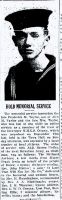 (FT01) AB Frederick Taylor with his nephew Frederick Harley Hill just before he set sail on HMCS Ottawa // Source: Canadian Virtual War Memorial (FT02) Article on Memorial Service for Frederick Taylor // Courtesy of Operation Picture Me (FT03) Service File for Frederick Taylor // Library and Archives of Canada