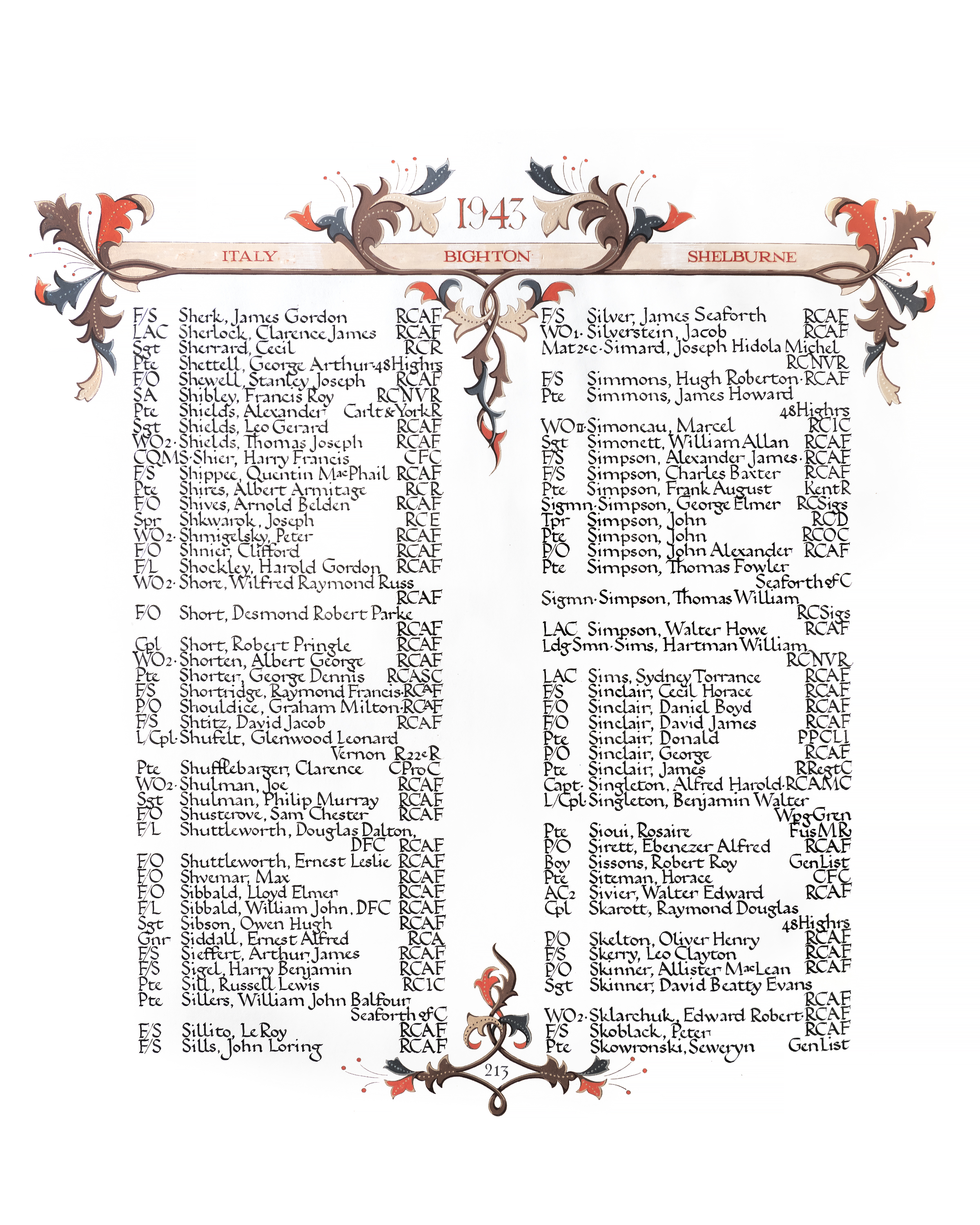 Able Seaman Simard died when HMCS ST CROIX was sunk on 20 Sep 1943 by U-305. There was only 1 survivor of her crew of 149.