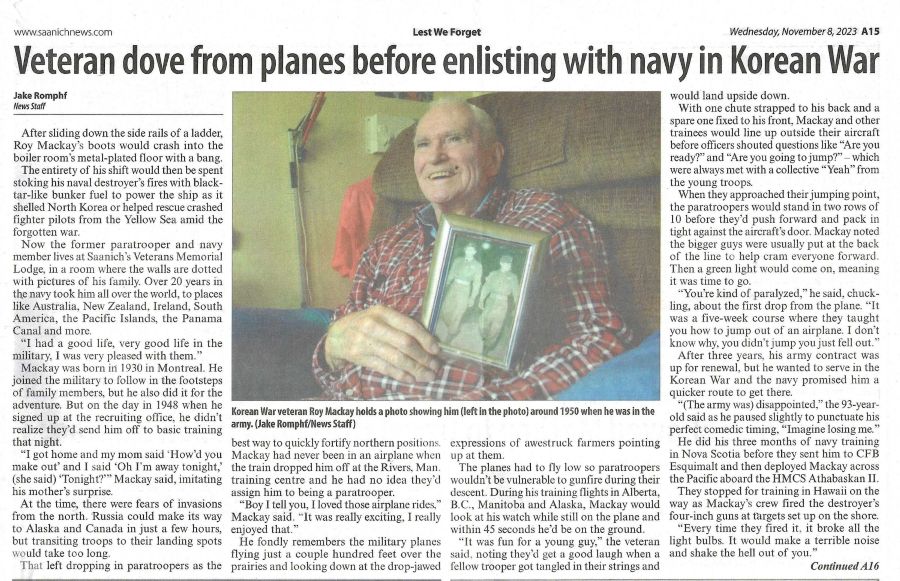 Service info: Ray served in the First Battalion PPCLI from 1948 to 1951 before joining the RCN