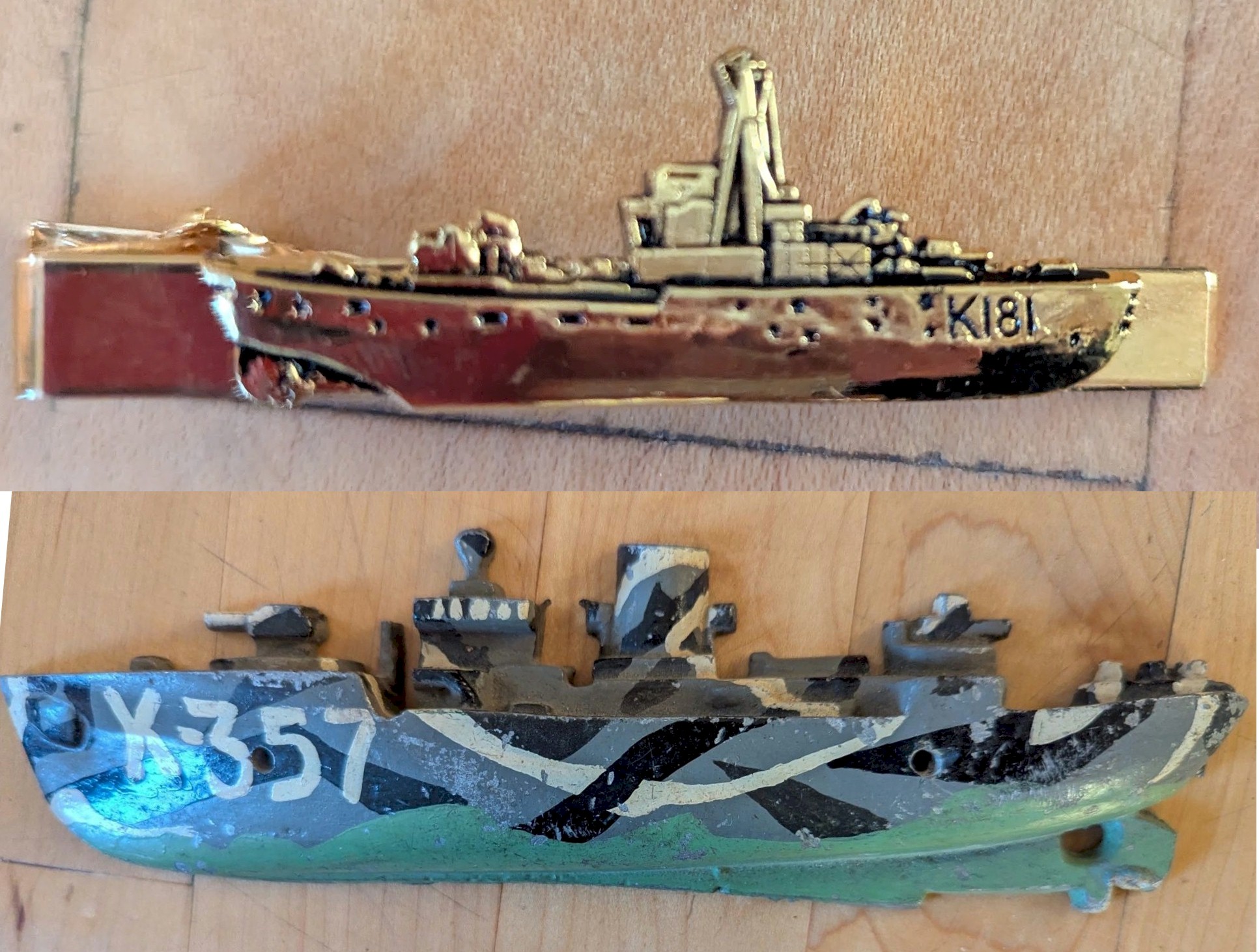 (FY05) HMCS RIVIERE DU LOUP handkerchiefs (FY06) HMCS SACKVILLE K181 and HMCS RIVIERE DU LOUP K357 souvenir brass corvettes