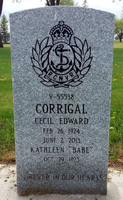 CORRIGAL, Cecil Edward (Cec) - It is with great sadness that the family of Cecil Edward “Cec” Corrigal announce his passing at the age of 89. Cec peacefully left us with family at his side early Sunday evening on June 2, 2013. Cec is survived by his wife of 70 years, Kathleen “Babe” Corrigal (nee Pirie); his daughters Faye Flaminio and Donna Flamminio (Tony); his grandchildren Anna (Daniel) Flaminio, Chella (Kevin) Flaminio, Jayson (Teresa) Headrick and Giovanni (Jami) Flamminio, and great-grandchildren Cruz, Vincenza, Thomas, Lauren and Milana; as well as his many nieces and nephews. He is also survived by his brother Keith (Sheila) MacDonald and was predeceased by his brother Roderick and sister-in-law, Jane MacDonald. Cec was born in the Gerrond district of St. Louis, Saskatchewan on February 26th, 1924 and his memories of being raised in St. Louis are very fond. He always attributed his values and way of life to the lessons from his grandfather and grandmother during his childhood years. When Cec was 15 years old he began work at the Dundurn Military Camp. He joined the Regina Rifles at the age of 16 and was sent to Debert, Nova Scotia for training. He was discharged due to complications from rheumatic fever and upon his return in 1941 he began work as an airframe mechanic with M & C Aviation in Prince Albert. In 1942, Cec volunteered for the Army again, becoming a signals instructor in Vernon, BC. However his medical history caught up with him and he was discharged again, returning home to sell advertising for the Prince Albert Daily Herald. It was during this time that he met and married his beloved Babe. In 1943, Cec joined the Navy and began training in Halifax, Nova Scotia as a gunner on a merchant ship during World War II. He served in the Atlantic, the Pacific and the Mediterranean for the duration of the war. He was awarded the 1939-1945 Star, the Pacific Star and the War Medal for his committed service to the Army and Navy. One of Cec's true passions in life was softball, and upon returning home from the war he commenced his playing career. Cec won a provincial title with the Prince Albert Jacks. In 2002 he was inducted into the Prince Albert Sports Hall of Fame. Cec was inducted not only as a player with the Jacks, but also as a Builder with the Corrigal Seals, a team he sponsored for many years. Cec joined the fur business in 1950, working for Alex Aaron, and eventually opened his own store, Cec Corrigal Furs and Fashions. Cec became well known for his noon hour TV shows and unique commercials, as well as his signature saying “Repeat, Repeat…No Interest”. He retired from the fur business in 1996. Community Service was a central to Cec's life. He was an avid member of the Kinsmen Club and became an honorary member. Cec committed himself to helping those who were struggling with alcohol addiction and volunteered countless hours to a twelve step program by speaking and giving his time to those who needed help. Cec's motivational speaking was also appreciated by a number of people. He was the MC for many events including political rallies for Prime Ministers Trudeau and Diefenbaker. Cec's passion to help others and his ability to help his community prosper was recognized when he received the 1984 Prince Albert Citizen of the Year award. Cec was a kind and loving man. His selflessness and affection was what always made people want to be around him. His smile and laugh were contagious on many levels. He took pride in Sunday suppers at his house, where family and friends would gather religiously. Cec will be greatly missed. Cec’s family would like to acknowledge the outstanding care given to him by the staff and nurses of the Victoria Union Hospital and the Good Shepherd Villas, especially head nurse, Pat Chuey. Funeral Service will be held at 1:30 p.m. on Friday, June 7, 2013 at St. Pauls Presbyterian Church, 12th Street and 1st Avenue East, Prince Albert, SK with Reverend Dr. R.M.A. Sandy Scott officiating. Interment will be held at South Hill Cemetery. In lieu of other tributes, memorial donations can be given to the Hearth & Stroke Foundation of Saskatchewan, 279 – 3rd Avenue N, Saskatoon, SK S7K 2H8. Funeral arrangements have been entrusted to Gray’s Funeral Chapel, Drew Gray, Funeral Director. (The Prince Albert Now 02 Jun 2013)