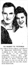 (DRS001) Wedding Announcement for Daniel Sunstrum and Mary Evelyn Dotey // The Toronto Star Jun 1943 // Courtesy of Operation Picture Me (DRS002) Seaman Daniel R. Sunstrum, RCNVR // Source: Library and Archives of Canada