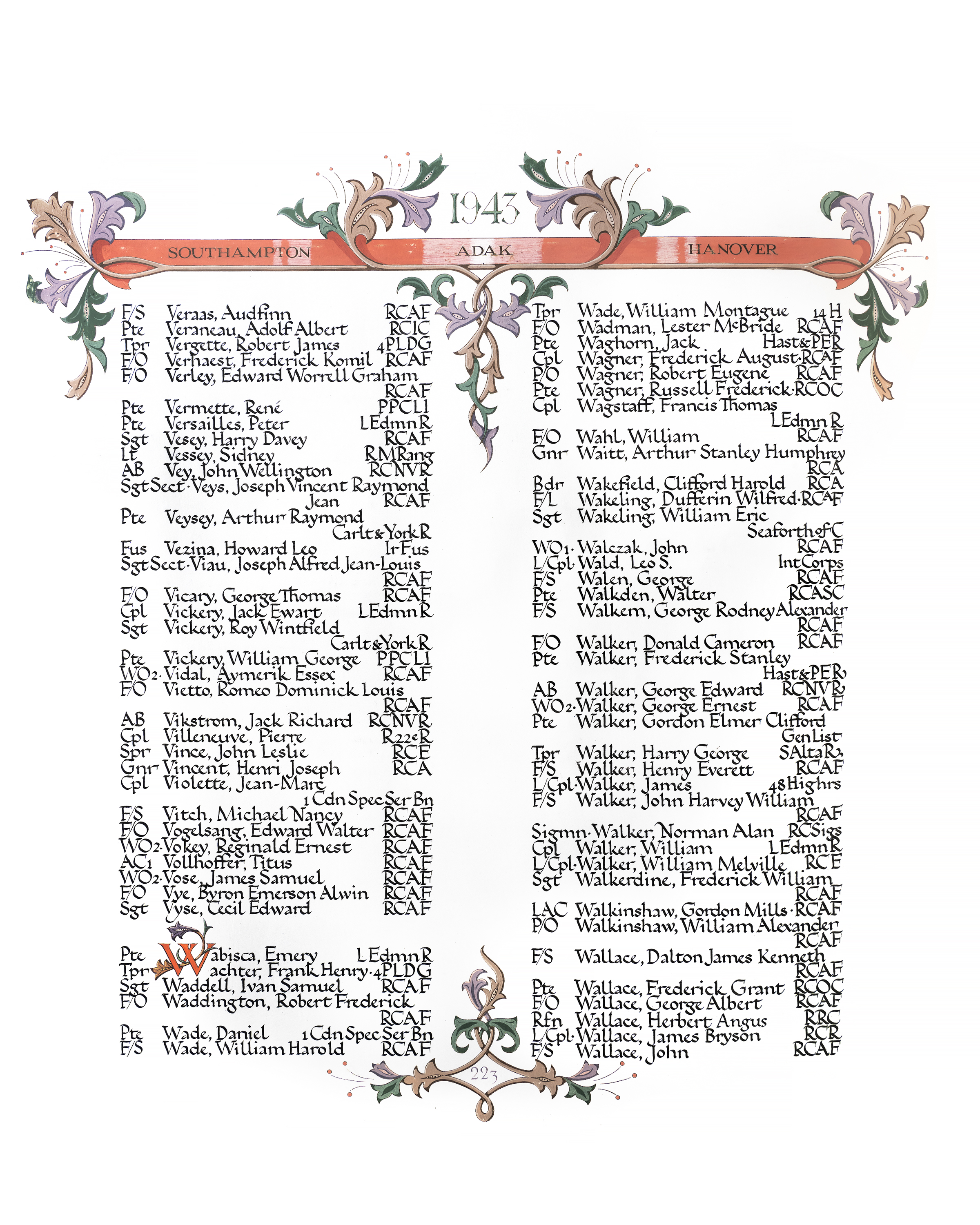 Note: HMCS ST CROIX was sunk on 20 Sep 1943 and the survivors were picked up by HMS ITCHEN K277 which was in turn sunk on 23 Sep 1943. Other than a couple crew that were identified by the sole survivor of ST CROIX as having been on ITCHEN it is not known which crew members died in the sinking of ITCHEN so all ST CROIX crew are listed as having died on 20 Sep 1943.