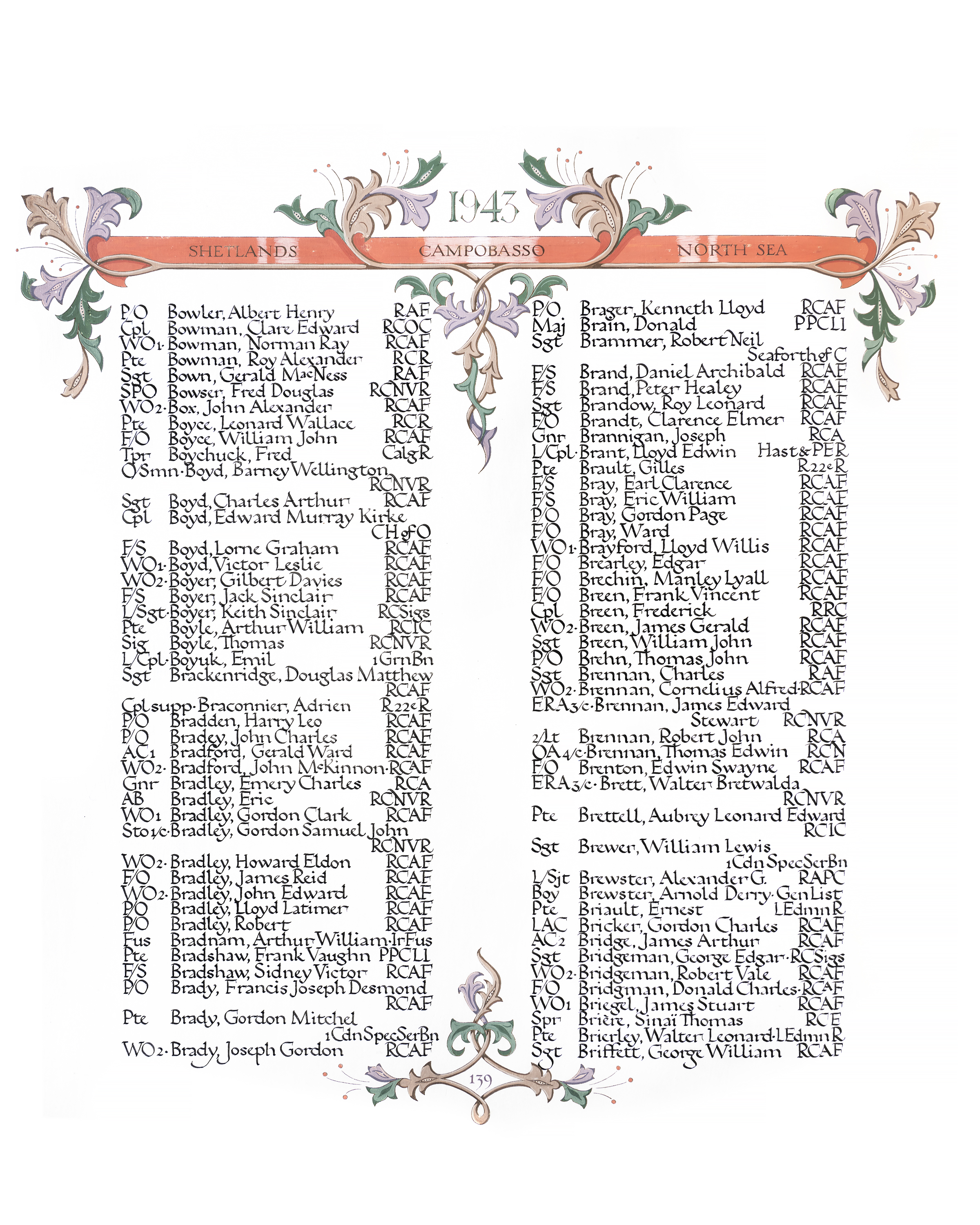 Note: HMCS ST CROIX was sunk on 20 Sep 1943 and the survivors were picked up by HMS ITCHEN K277 which was in turn sunk on 23 Sep 1943. Other than a couple crew that were identified by the sole survivor of ST CROIX as having been on ITCHEN it is not known which crew members died in the sinking of ITCHEN so all ST CROIX crew are listed as having died on 20 Sep 1943.
