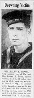 (WEL001) Article on the drownign death of Wellesley Leard // The Saint John Times Globe // Courtesy of Operation Picture Me (WEL002) Headstone for Wellesley Leard in the Fernhill Cemetery, Saint John, NB // Source: The Canadian Virtual War Memorial (WEL003) Service file of Wellesley Leard // Source: The Library and Archives of Canada