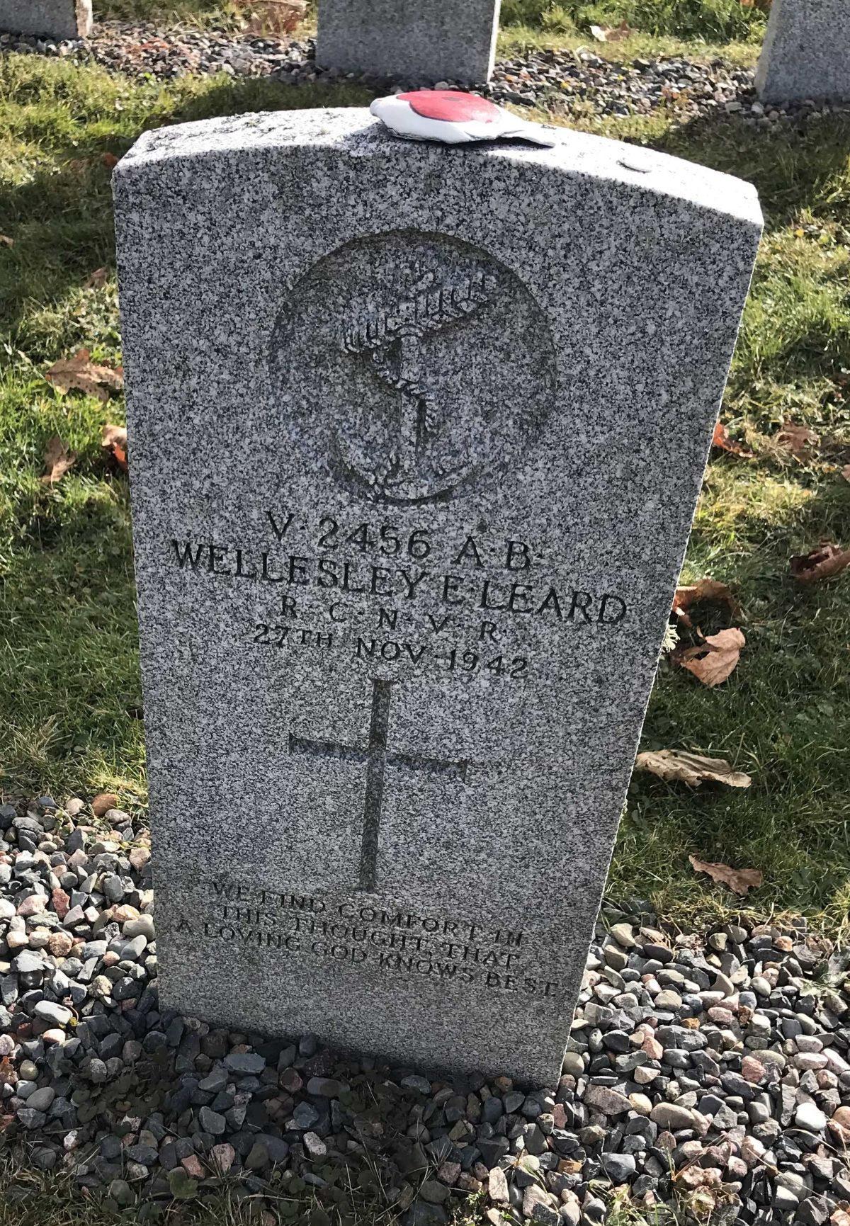 Able Seaman W. E. Leard died by accidentally drowning when the dory he was in capsized at Courtenay Bay, East Saint John, New Brunswick. His body was recovered November 28, 1942. He was buried in the Fernhill Cemetery, Saint John, New Brunswick.