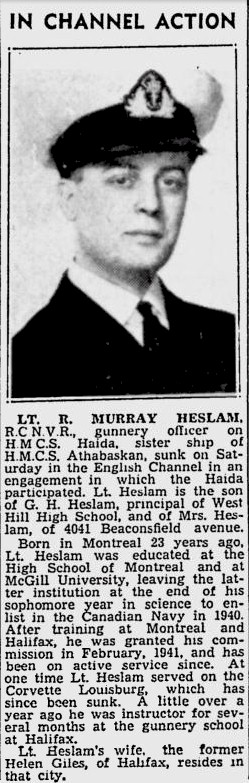 Newspaper article on Lt. Richard Murray Heslam