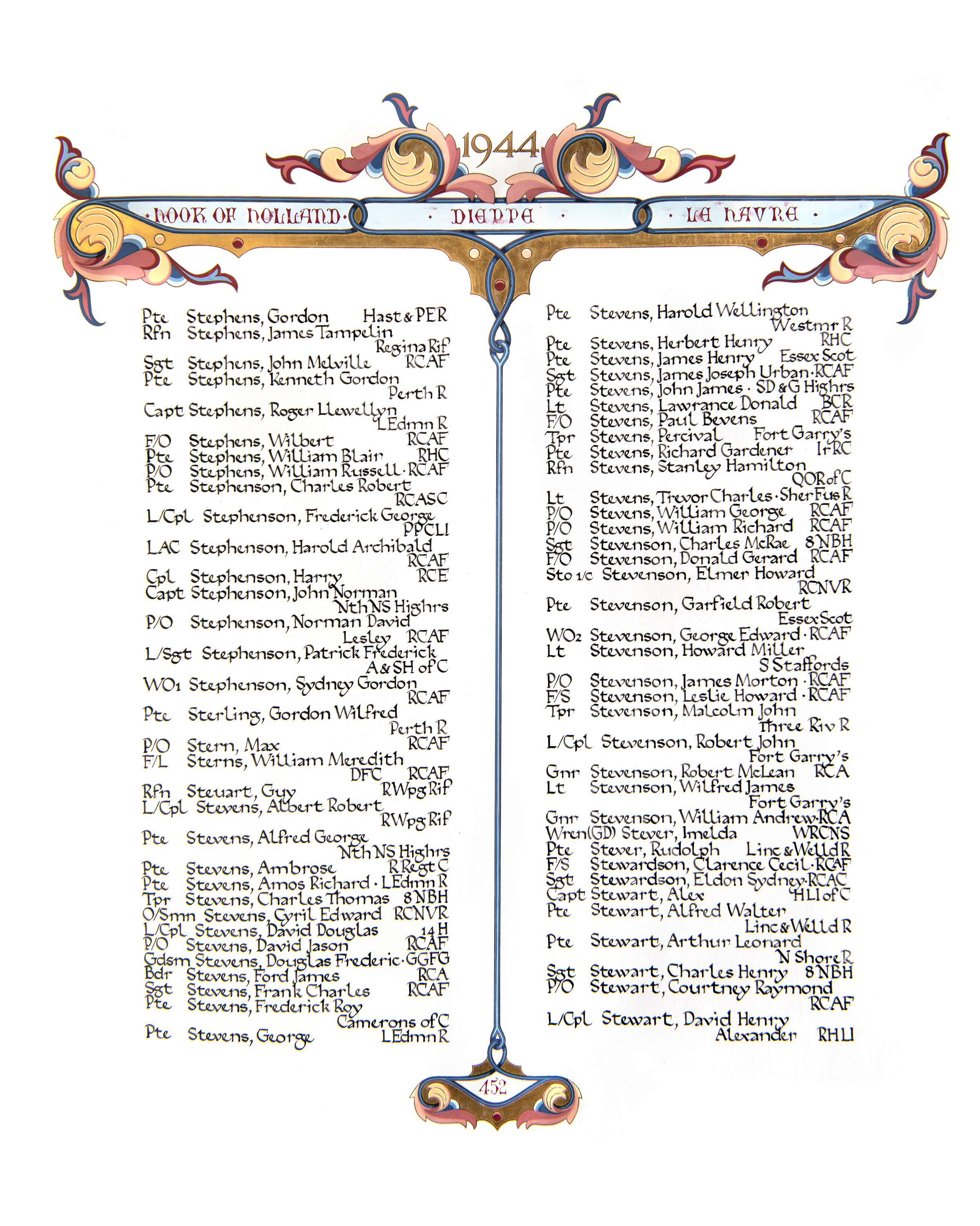 Ships served in: HMCS MONTREAL - Enlisted 07 Jun 1943 * Commenced Active Service 23 Jun 1943 as an Ordinary Seaman, RCNVR HMCS CORNWALLIS - Drafted to CORNWALLIS 11 Aug 1943 HMCS HAMILTON - Served in HAMILTON 10-19 Oct 1943 for Seamanship Training while drafted to CORNWALLIS HMCS STADACONA - Drafted to STADACONA 19 Nov 1943 HMCS HOCHELAGA II - Drafted to HOCHELAGA II 27 Nov 1943 HMCS VALLEYFIELD - Drafted to VALLEYFIELD 08 Dec 1943. Commissioning crew