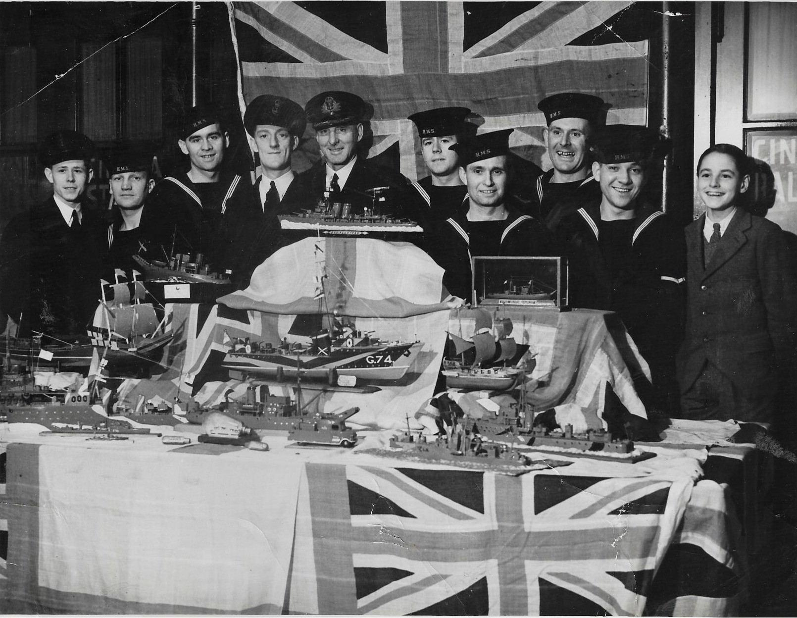 (NCR057) Unknown group of officers having a drink (NCR058) Photo appears to be a model building competition. There is no description or names on the back of the photo (NCR059) Sailors chipping ice off an unknown ship (2 photos)