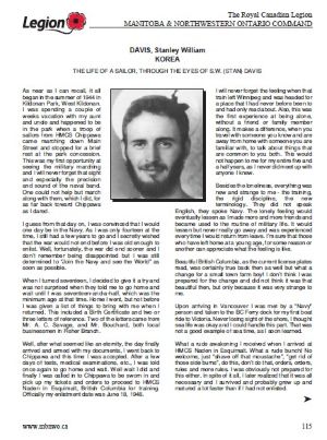 The Life of a Sailor, through the eyes of S. W. (Stan) Davis The Royal Canadian Legion Manitoba & Northwestern Ontario Command