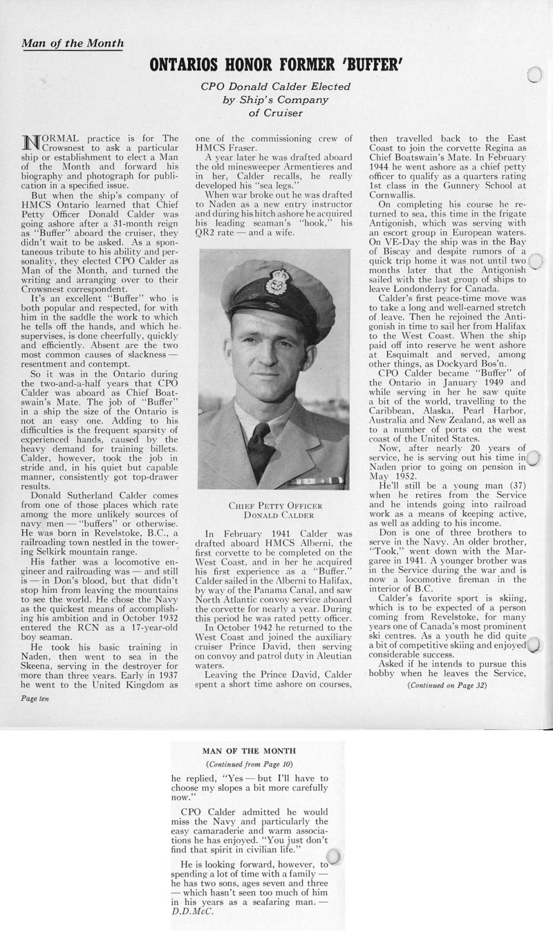 (below) Article from the Nov 1951 Issue of the CROWSNEST magazine