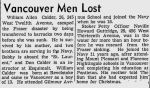 (WAC001) Article on the death of LS William Calder and SPO Neville Guttridge (WAC002) LS Clader on Missing List (WAC003) Service file for William Calder // Source: The Library and Archives of Canada