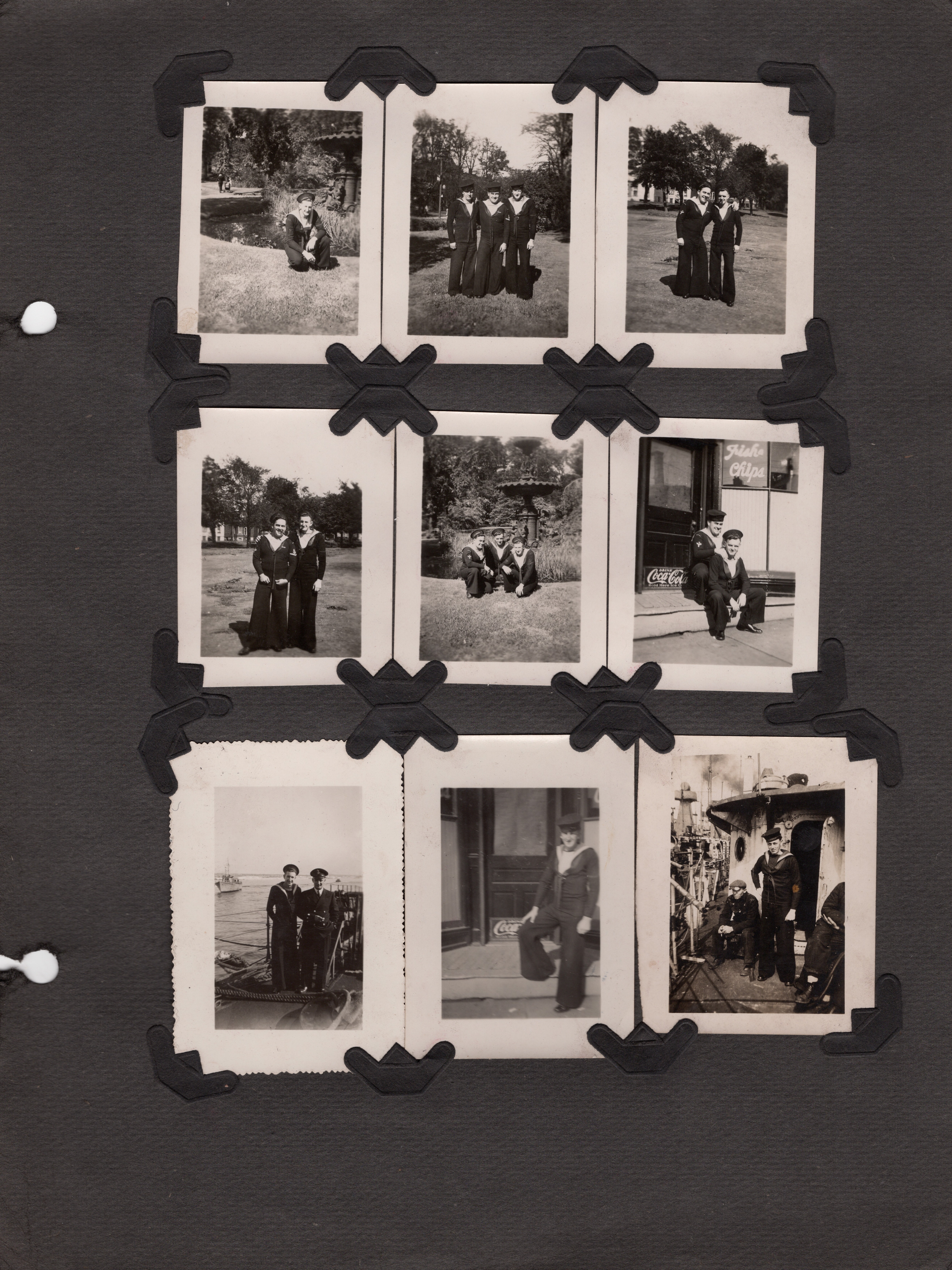 (JNC072) Group of sailors on HMCS HAMILTON I24 at St. John's, Newfoundland (JNC073) James Cox standing by the an air intake on HMCS HAMILTON I24 (JNC074) Unknown sailors on the quarterdeck of HMCS HAMILTON I24 (JNC075) James Cox onboard HMCS HAMILTON I24 (JNC076) HMCS HAMILTON I24