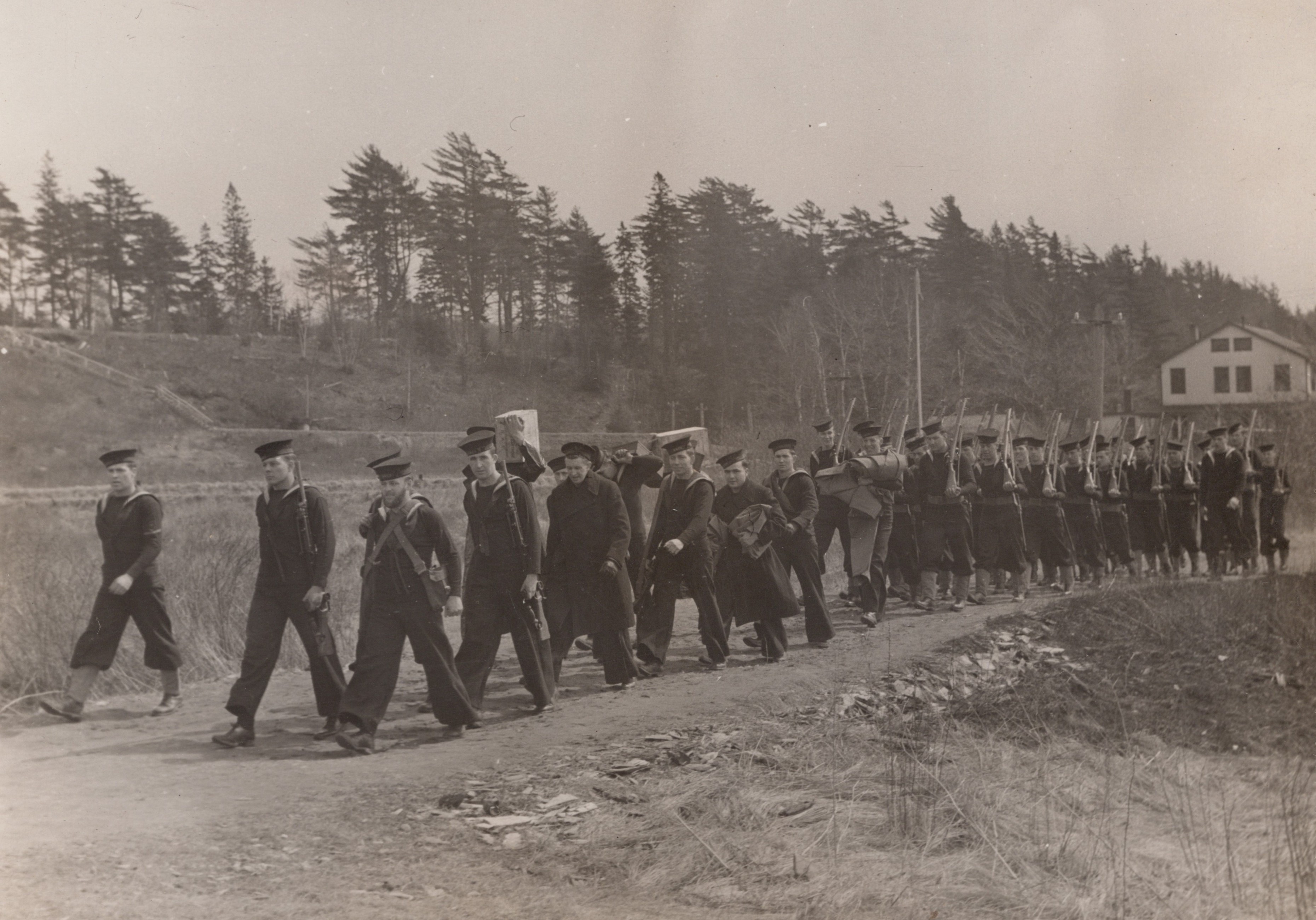 (JNC085 - JNC086) Sailors ashore at an unknown location. It is not known if they are off HMCS HAMILTON I24 or HMCS BITTERSWEET K182