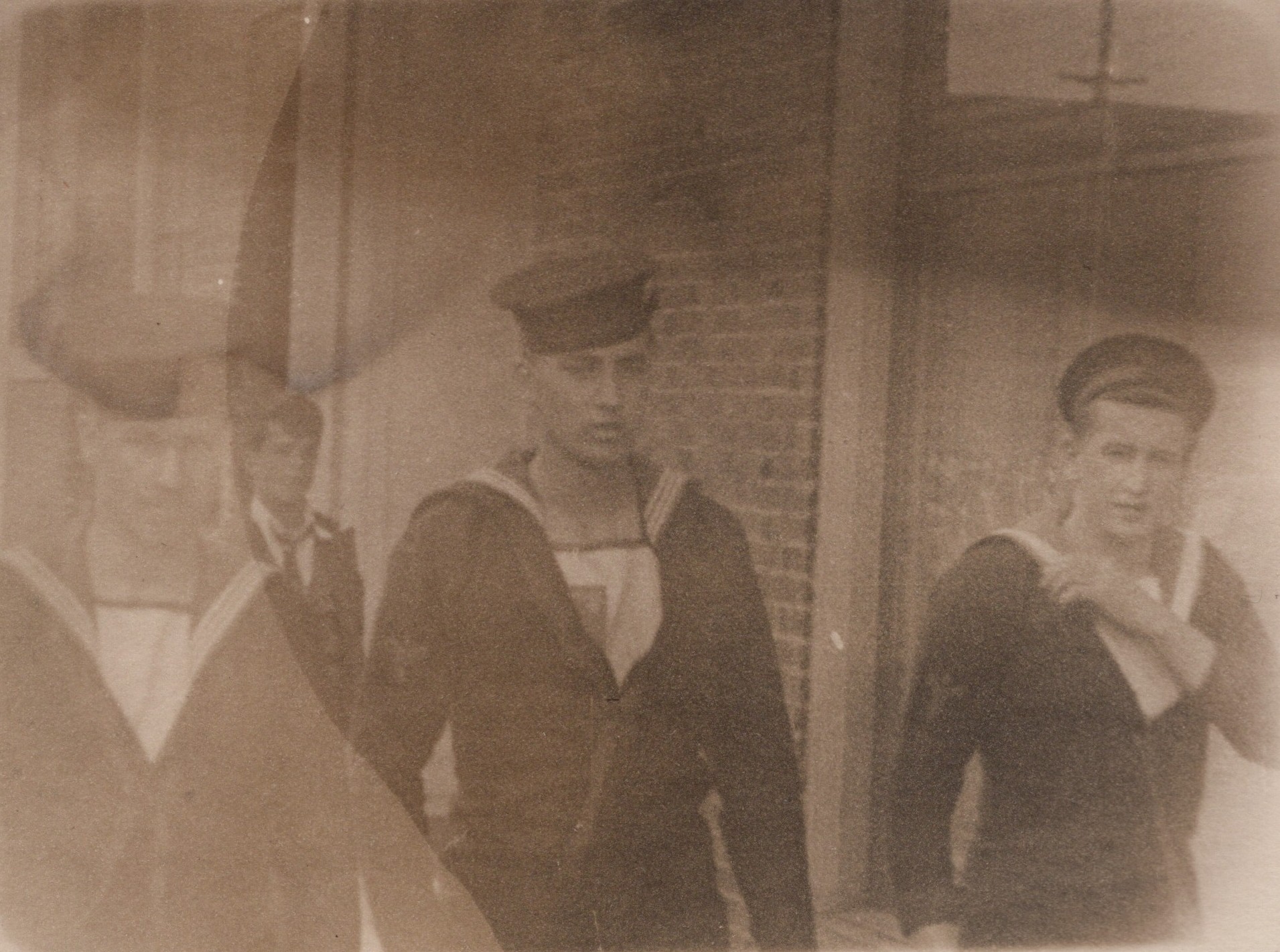 (JNC027) Two friends / shipmates of James Cox in from of a restaurant - believed to be in Halifax (JNC028) James Cox in front of a restaurant - believed to be in Halifax (JNC029) James Cox (on the right) ashore with friends / shipmates