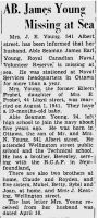(JEY001) Photo of James Young // The Ottawa citizen // Courtesy of Operation Picture Me (JEY002) AB James Young Missing at Sea // The Ottawa Citizen // Courtesy of Operation Picture Me (JEY003) Service file for James Young // Source: The Library and Archives of Canada