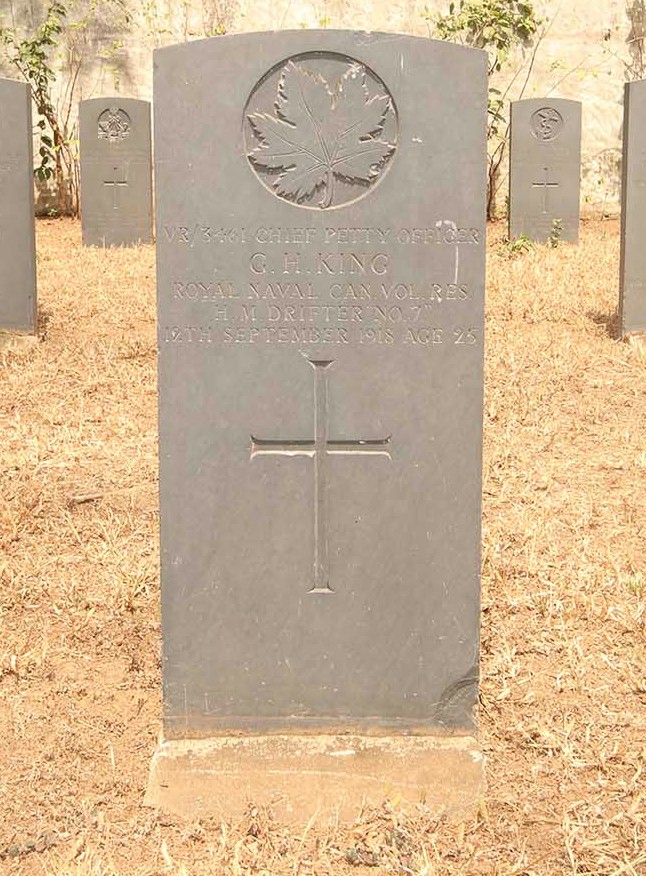 Headstone for CPO George King King Tom Cemetery, Freetown, Sierra Leone, Africa Source: Canadian Virtual War Memorial Photo taken by a crew member of HMCS SUMMERSIDE during a port visit in March 2017
