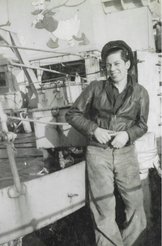 Johnson by the gun deck on HMCS TRILLIUM K172