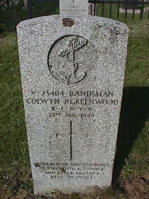 GREENWOOD, Colwyn James, Bandsman, V75404, RCNVR - died 12 Aug 1943, HMCS STADACONA - Son of Chester Arthur and Annie May Greenwood, of Brantford, Ontario.