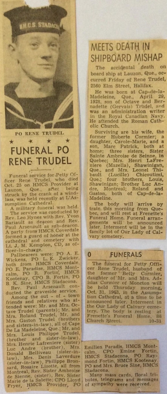 (RT05) Article from the Halifax Mail-Star, 29 Oct 1963, on the death of PO Trudel