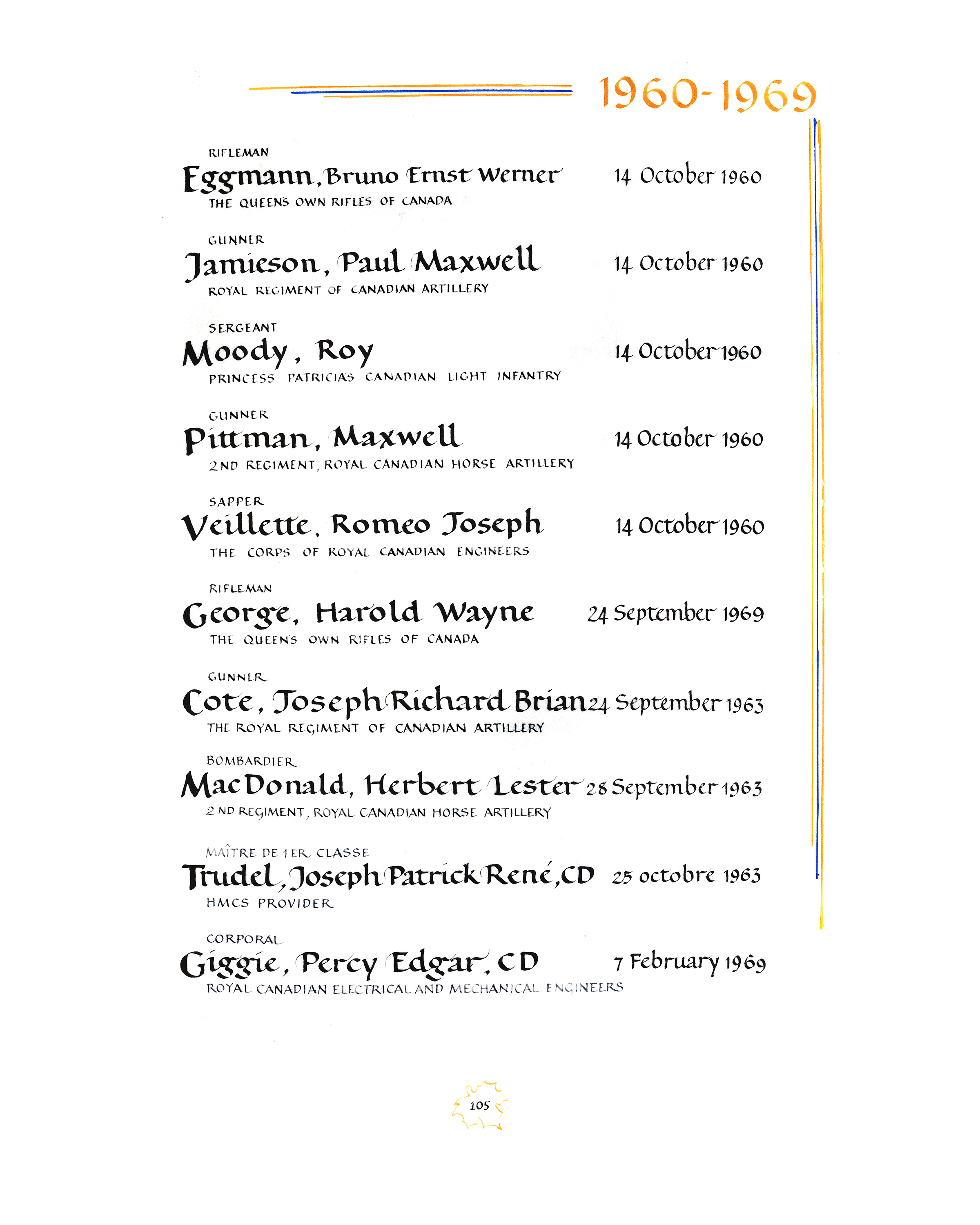 * note: while PO1 Trudel's death was attributable to military service, he was not added to the Book of Remembrance until 2019 and that was after queries were made by his daughter and several retired sailors about his omission from the Books of Remembrance.