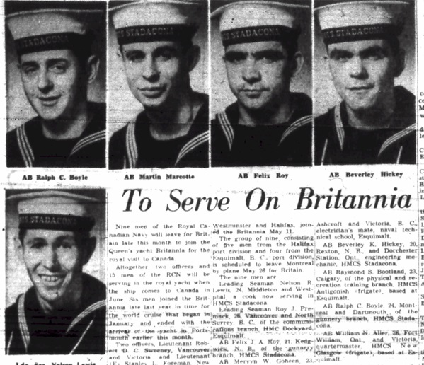 Ships served in: HMCS HAIDA - Served in HAIDA in the late 1950s HMY BRITANNIA