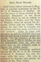 (EJBB001) Article on CPO Edward Bingham and his son, Leading Victualling Assistant Frederick C. Bingham