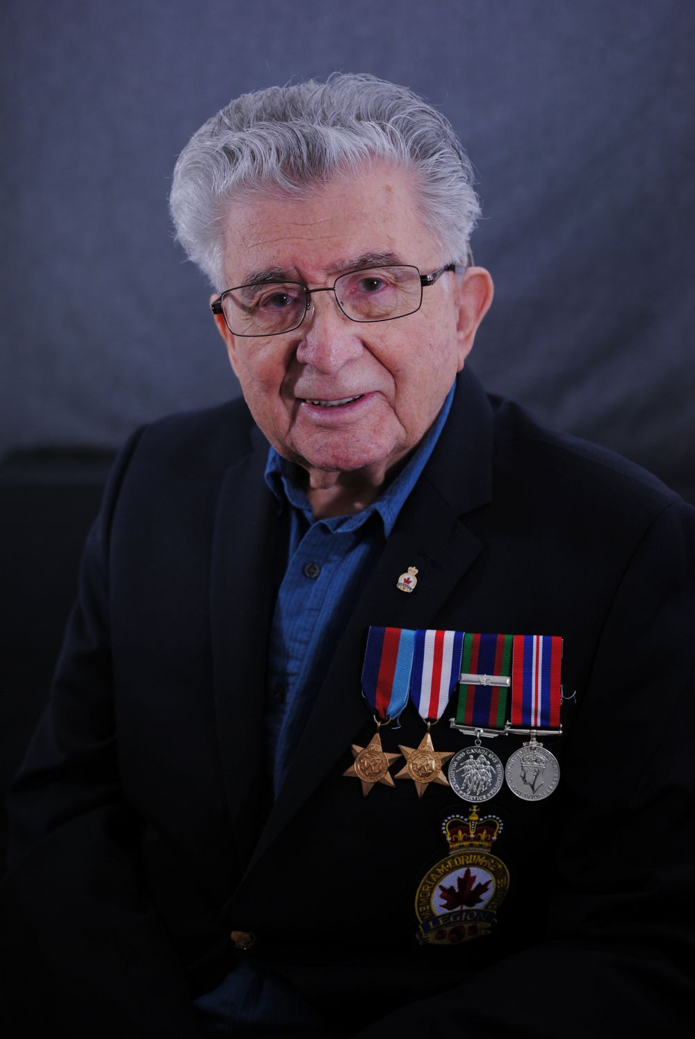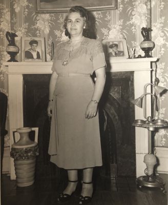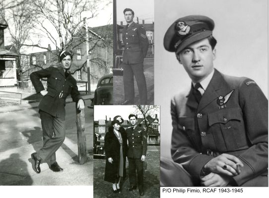 (Left) Rose Fimio with portraits of 2 of her sons on the mantle behind her (Right) Pilot Officer Philip Fimio, RCAF