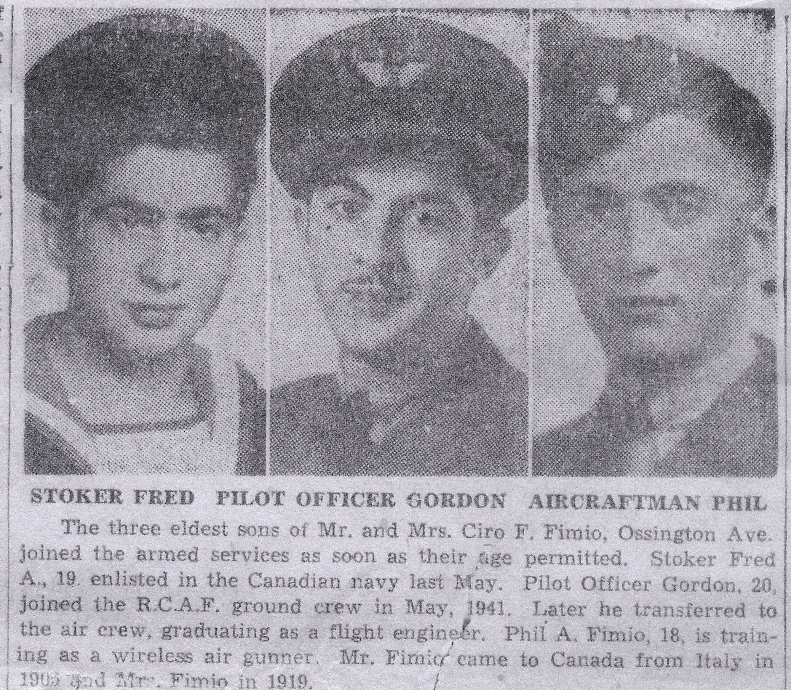 of Fred Fimio and his two brothers Gordon and Phil. Fred joined the