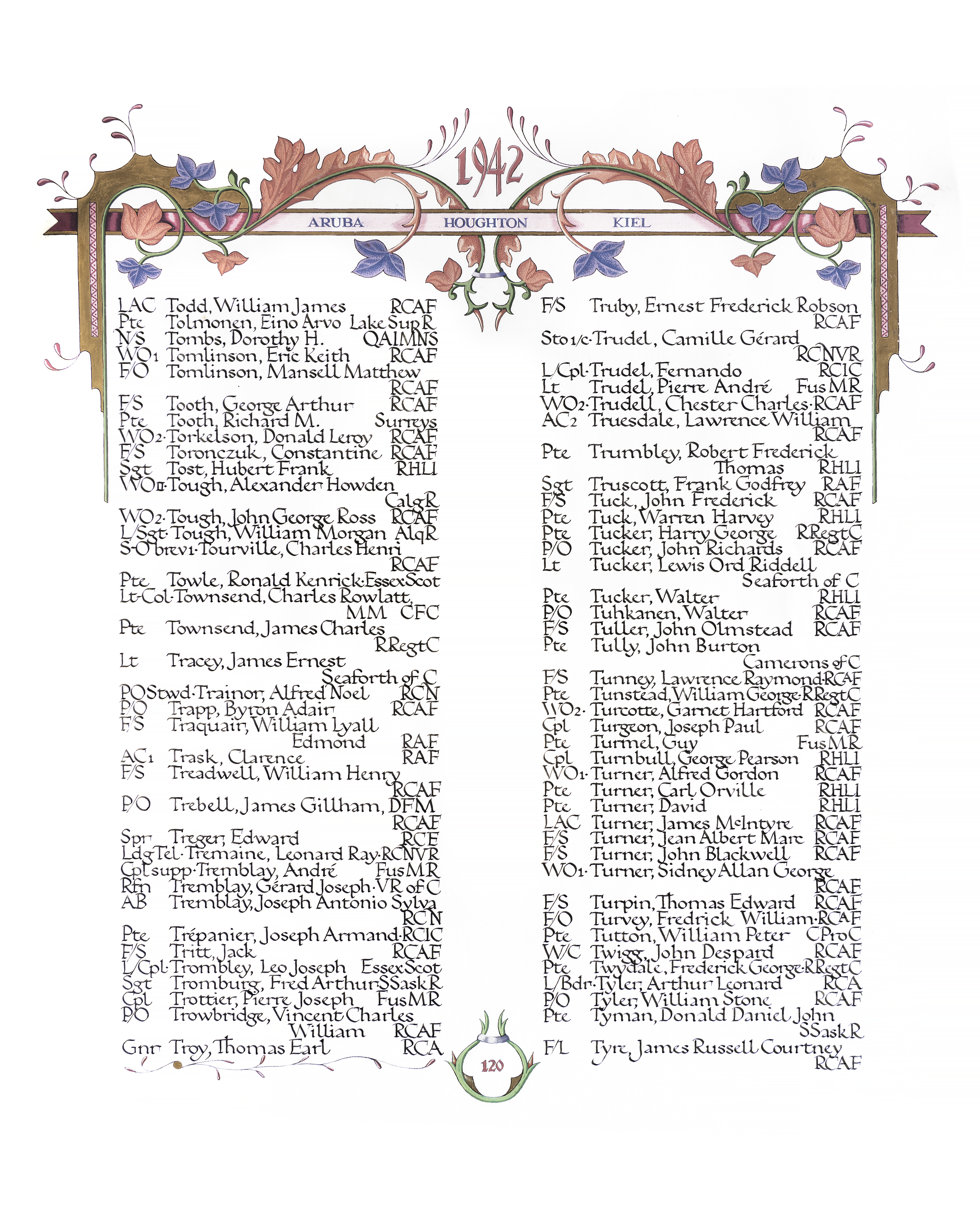 Ships served in: SPECIAL SERVICE COMPANY RCNVR - Enlisted 15 Sep 1939 as an Ordinary Telegraphist, RCNVR HMCS STADACONA - Drafted to STADACONA 15 Sep 1939 * Rated Acting Telegraphist, RCNVR HMCS ACADIA - Drafted to ACADIA 08 Dec 1939 HMCS STADACONA - Drafted to STADACONA 03 Feb 1941 * Rated Telegraphist (Trained Operator), RCNVR 11 Feb 1941 * Telegraphist 3rd Class, RCNVR 08 Mar 1941 HMCS ROSTHERN - Drafted to ROSTHERN 28 Apr 1941 * Rated Acting Leading Telegraphist, RCNVR 20 Feb 1941 (Back dated) * Sick Bay 13 Sep 1941 HMCS STADACONA - Drafted to STADACONA 11 Feb 1942 * Medically Unfit (due to Tuberculosis) 16 Feb 1942. Discharged to the Nova Scotia Sanitarium, Kentville, NS - * Died at the Nova Scotia Sanitarium, Kentville 15 Jul 1942 * Buried in the St. John's Cemetery, Halifax, NS