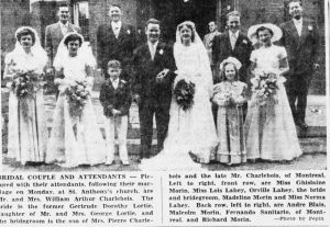 (WC001) William Arthur Charlebois wedding to Dorothy Lortie // The Ottawa Citizen 22 Jun 1949 (WC002) Grave marker for William Charlebois at the Notre-Dame of Ottawa Cemetery, Ottawa, ON. // Source: Find-a-Grave; added by Deb Wilson