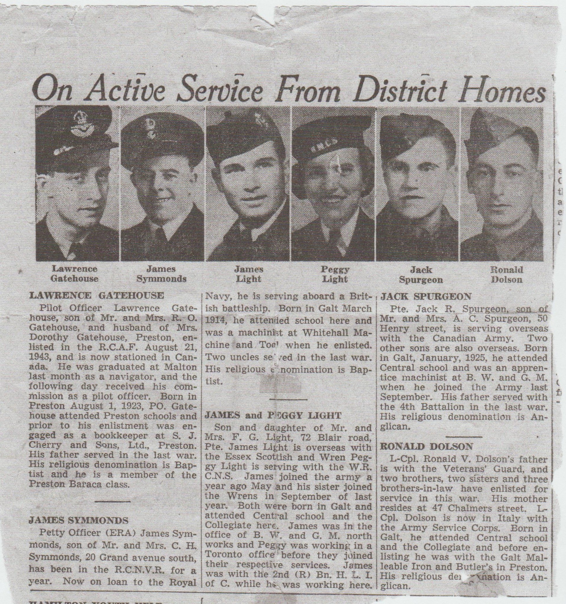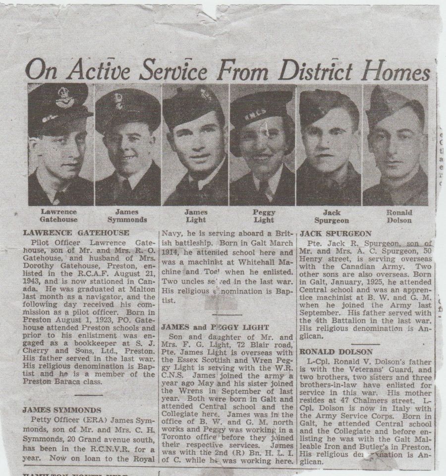 Peggy's brother James was killed in France 29 Jul 1944 during the Second World War.