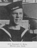 Able Seaman Kenneth Harvey Kyle was born at Moose Jaw, Saskatchewan, April 09, 1920. He saw service in the Caribbean and was a survivor of the sinking of HMCS Fraser. He was the son of John E. and Winnifred Kyle. Kenneth attended King George School and Moose Jaw Tech (motor mechanics) and enlisted on June 06, 1938 at Moose Jaw, Saskatchewan. His sister Shirley joined the Canadian Women's Army Corps as soon as she was old enough in 1943. He is unmarried and is survived by his parents who reside at Moose Jaw, Saskatchewan.
