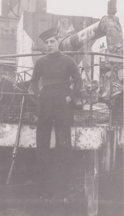 In 1940, he answered the call to service and joined the RCN. He travelled to British Columbia with other recruits from London and trained as a stoker. He was assigned to the HMCS Moose Jaw and saw action on its initial operation in the Battle of the Atlantic. He often spoke of the sinking of a U-boat off the coast of Greenland. On February 9/42 his ship rescued French sailors off the "Alysse" which had been torpedoed by a U-boat. Sometime later in 1942 he joined the ships company on the HMCS SOREL. He also spent time on the HMCS WETASKIWIN. While on loan to the Royal Navy, he saw action in the Mediterranean, North Africa and Sicily. He also served on the following LCI (L): RCN 271, RN 281 and 121.