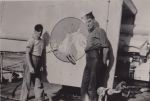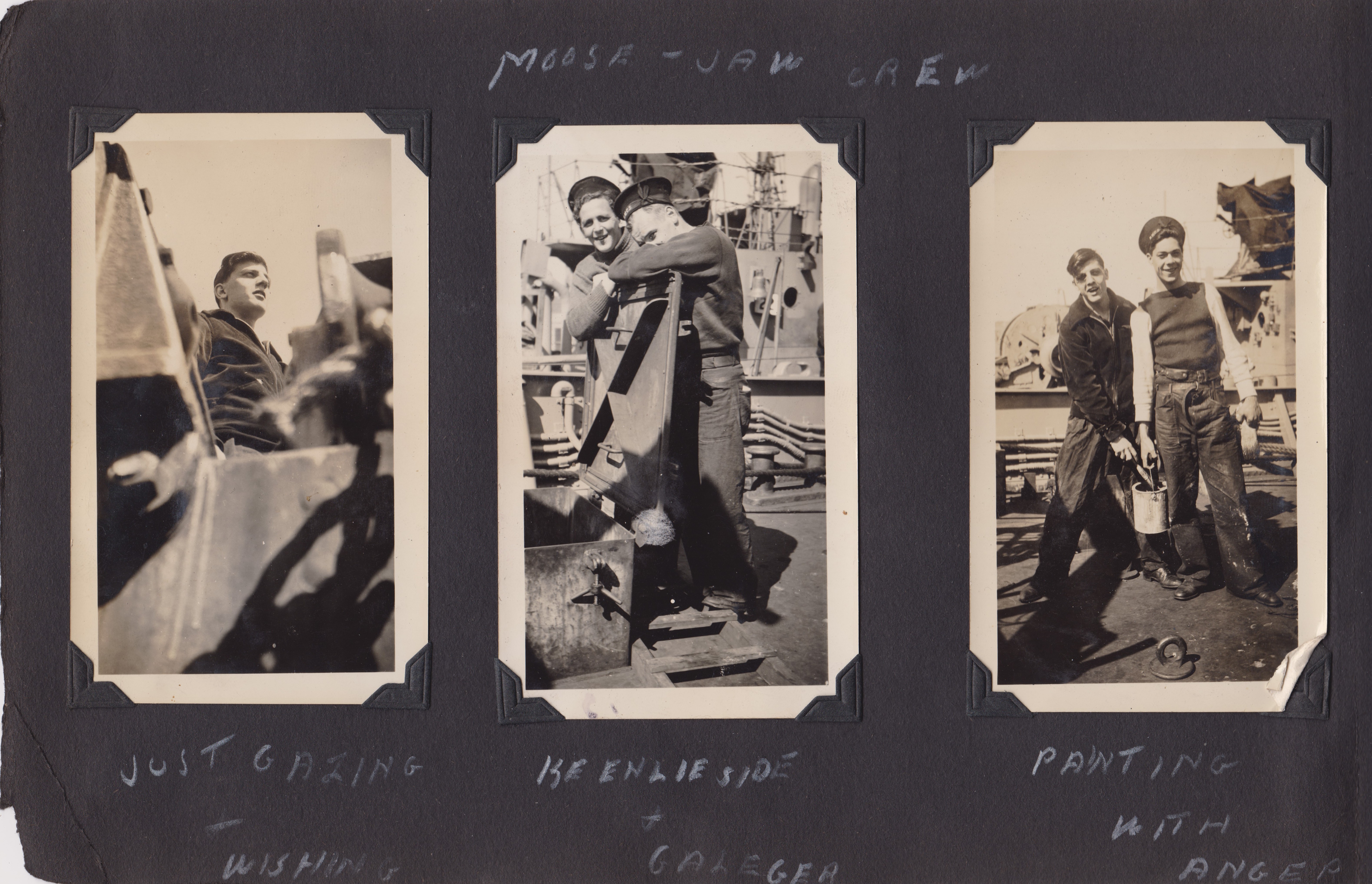 (RJG015) Album page 2 - HMCS MOOSE JAW K164 crew (RJG016) Jack Gilbrook on HMCS MOOSE JAW K164 "Just gazing & Wishing" (RJG017) Keenlieside and Galeger on HMCS MOOSE JAW K164 (RJG018) Jack Gilbrook and Anger painting HMCS MOOSE JAW K164