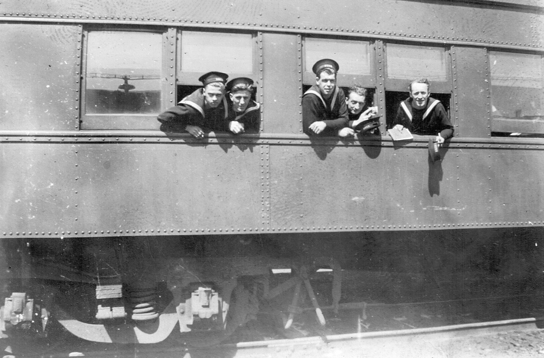 (RSR071 - RSR0174) Unidentified sailors posing for photos - location unknown - though likely the train station at Moncton, NB