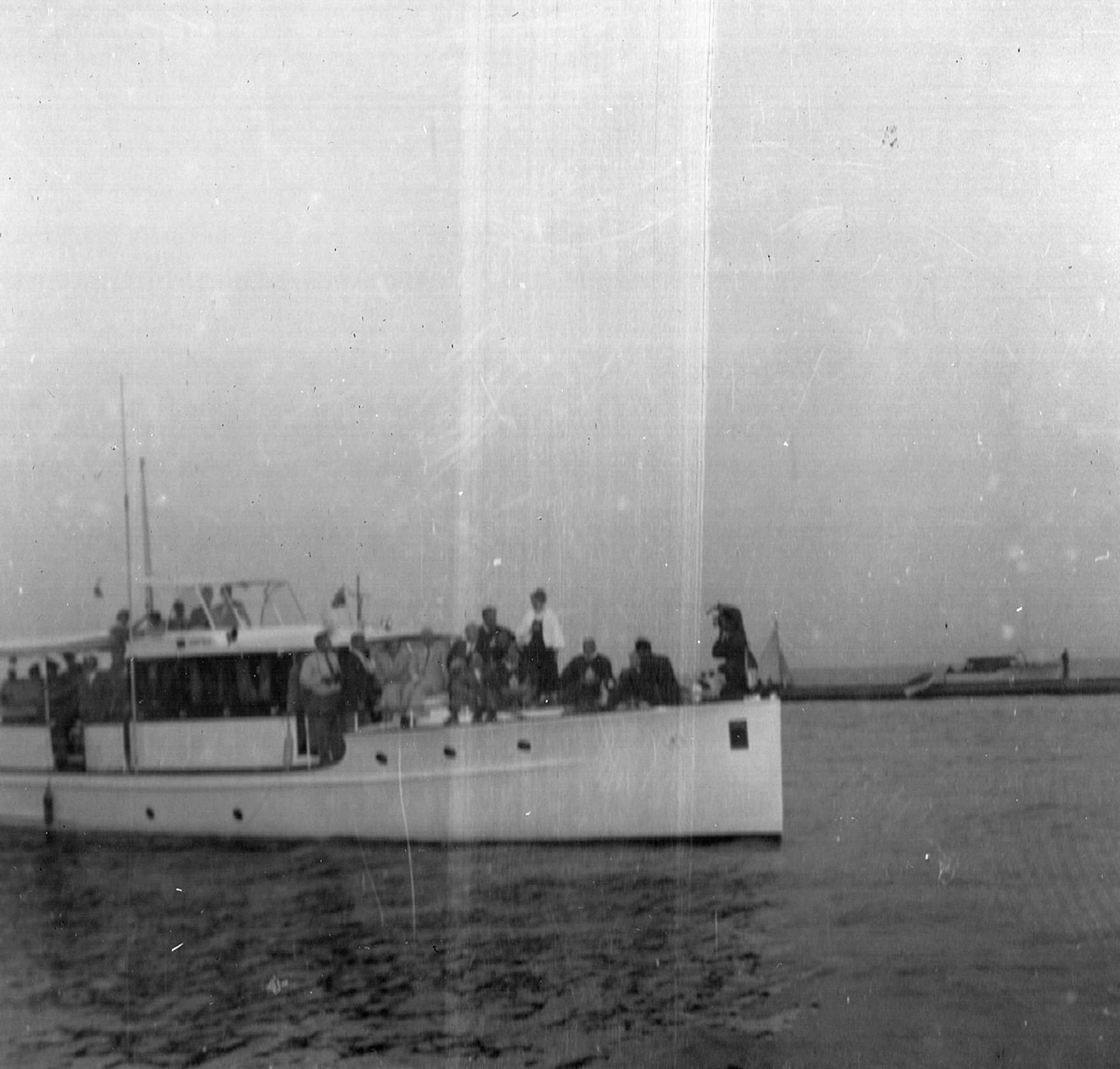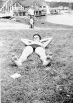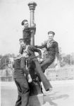 (RSR056 - RSR060) Unidentified sailors taking part in antics on the lock at the entrance to the Shubenacadie Canal on Lake Banook