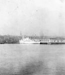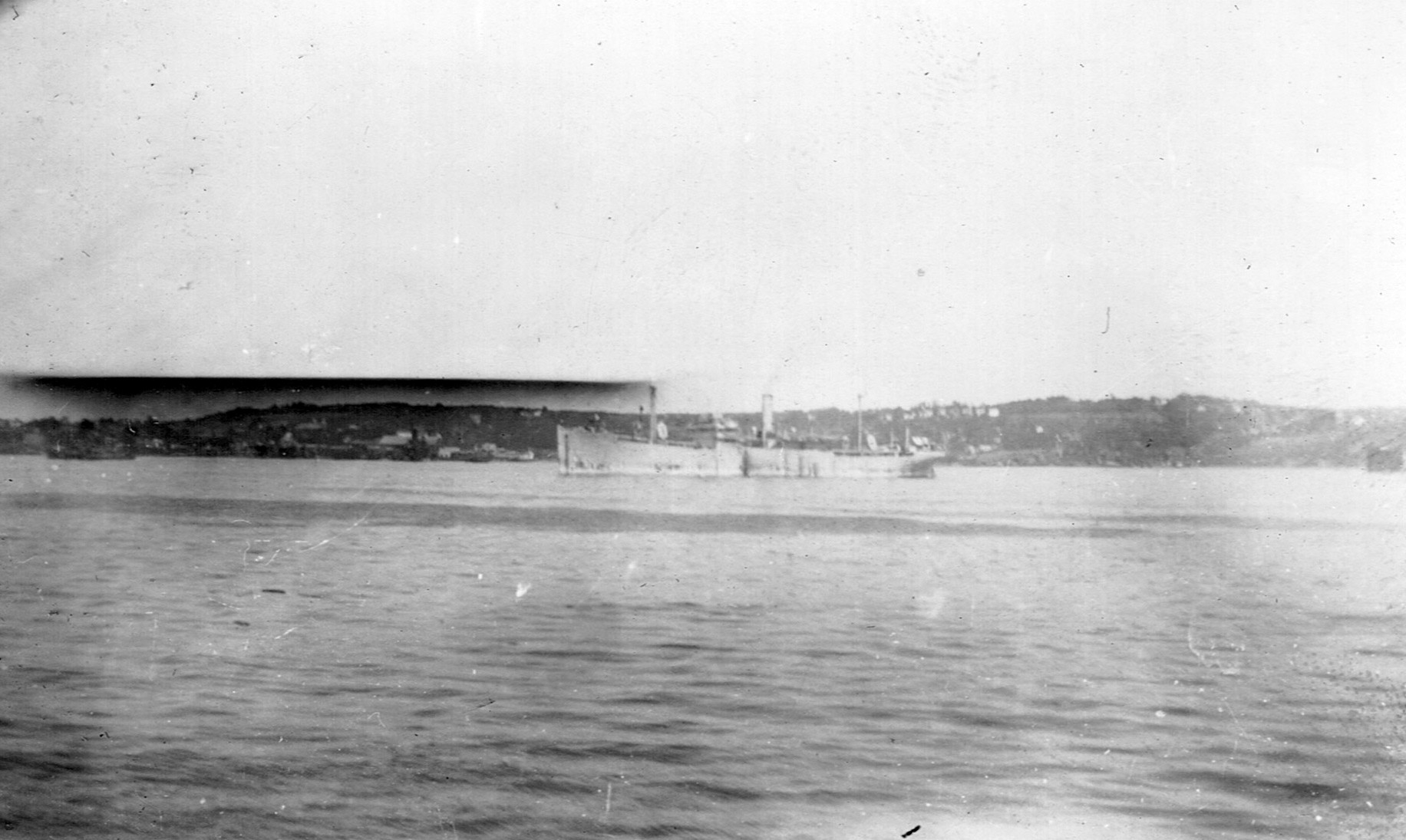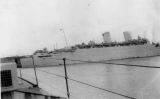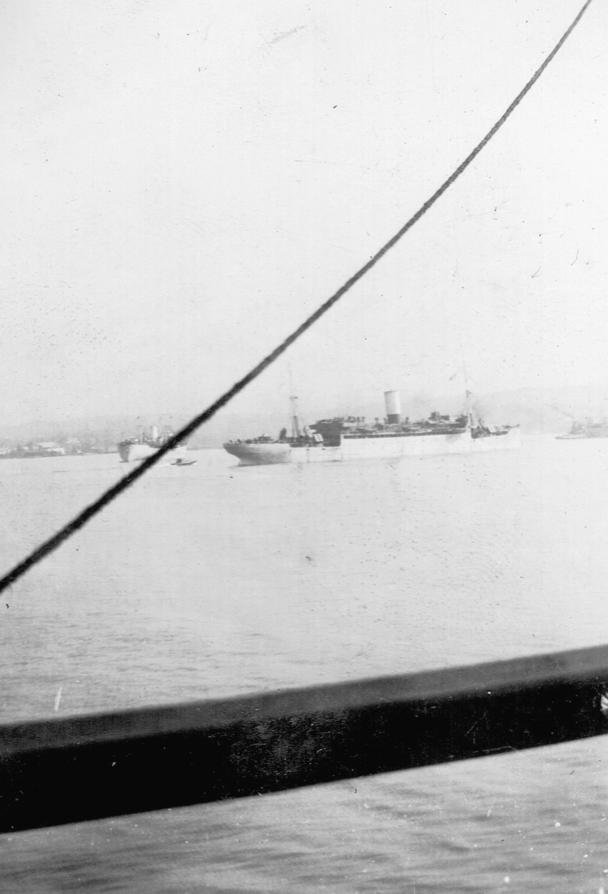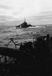 (RSR121) Unknown frigates (RSR122) Escort group laying a smoke screen. HMCS MEON in the foreground also making smoke. (RSR123) Merchant ship in unknown port (RSR124) Unknown corvette heading out to sea from Halifax. Georges Island off the to left of the photo (RSR125) Fishing schooner in an unknown port