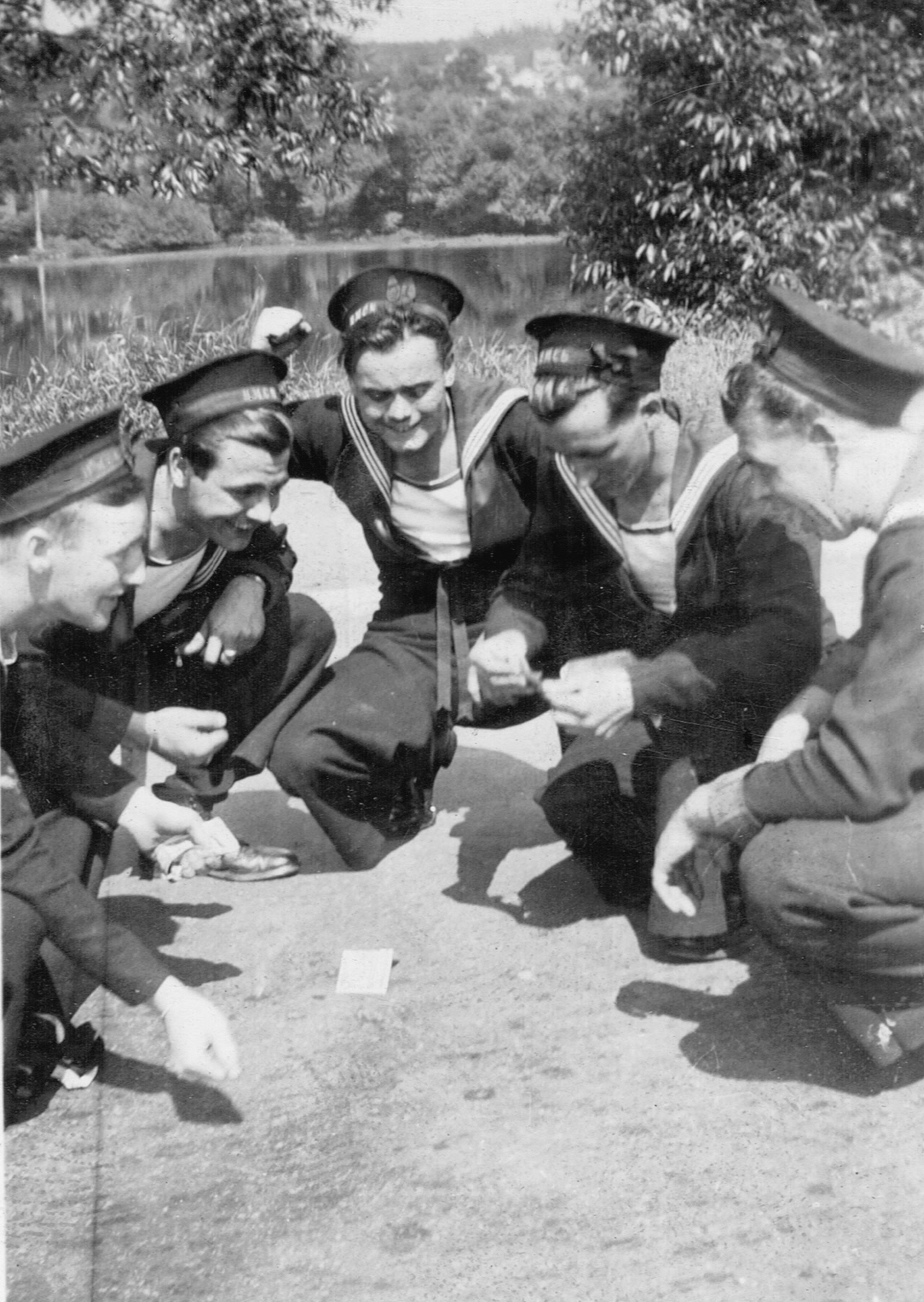 (RSR033 - RSR037) Unidentified sailors relaxing on the rocks at Point Pleasant Park, Halifax, NS